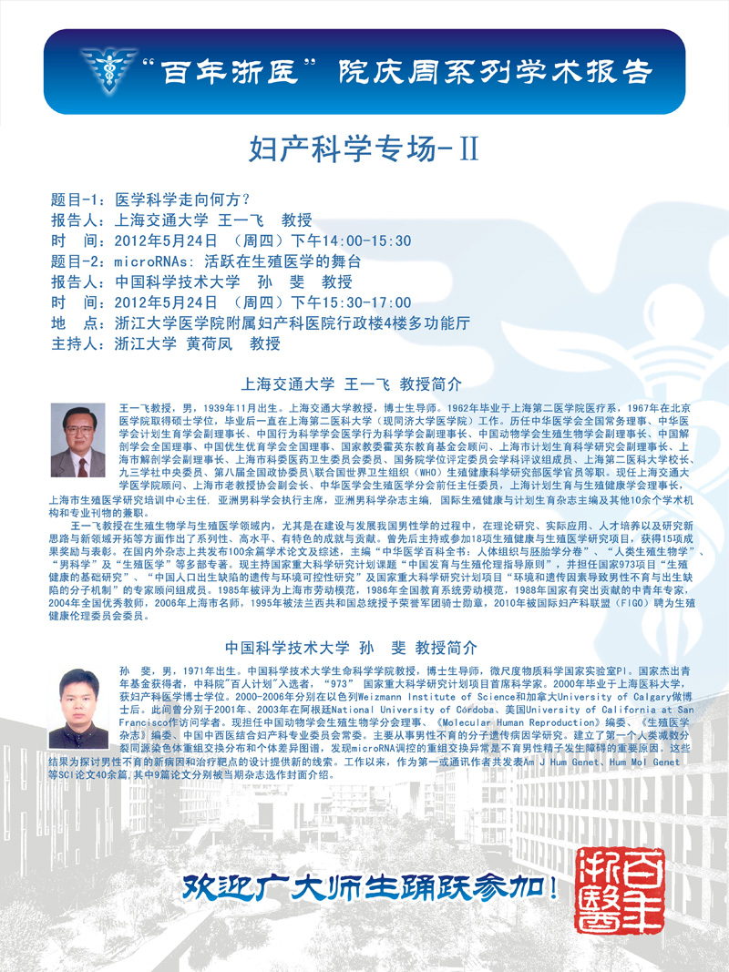 “百年浙医”院庆周系列学术报告——妇产科医院专场