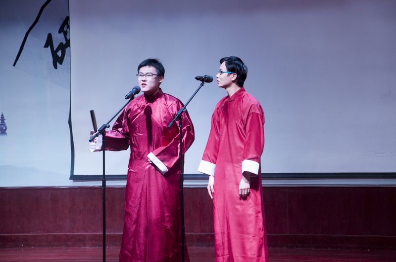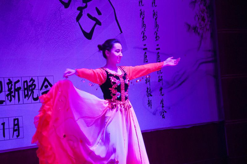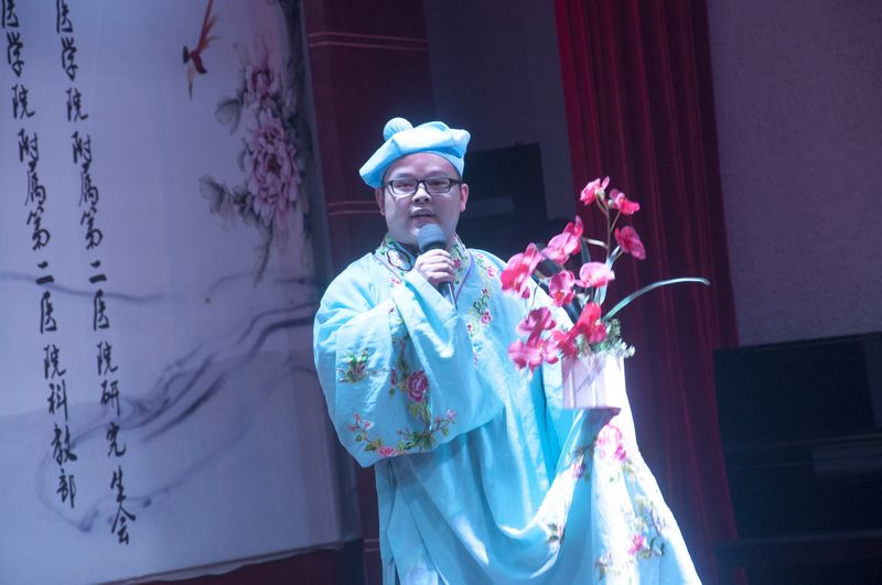 王院长和陈书记分别为晚会致辞,为研究生们带去了新年的祝福和鼓励。伴随着《青春梦想 海阔天空》的诗朗诵晚会正式拉开序幕,晚会既有古典舞、现代舞、民族舞、拉丁舞、又有相声、小品、戏曲、器乐合奏等丰富多彩的节目形式。小品《门诊之元旦》、单口相声《见习见喜》生动、诙谐地叙说了医务工作者、医学生的工作学习状况;《女驸马》《我家有个小九妹》等戏曲串烧完美展现了我院研究生深厚的中国古典艺术底蕴;马来西亚同学CHIN WENJIE带来的吉他弹唱以及泰国同学NOUNGNINGPHORN参与演出的舞曲《咏春》更体现出我们浙医二院是个国际化的大家庭。