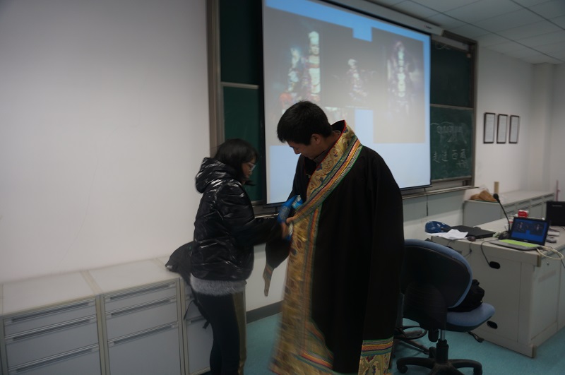 本次活动由13预防级预防学生巴桑普赤、达娃曲珍(藏族)及另外两名同学自主策划完成。活动以现场访谈的方式进行,两位藏族同学担任访谈嘉宾,另外两位同学担任主持,向大家分别介绍了关于西藏的服饰文化、饮食文化、民族信仰、藏语及藏文字、热门景点等民族风情元素,更有现场同学的趣味提问,活动氛围十分轻松活跃基本达到了预定效果。由于现场同学的积极参与,原定1.5个小时的活动,足足用了2.5个小时。主持同学虽然很累,但同学们能通过本次活动了解西藏,增长见识也是极好的。