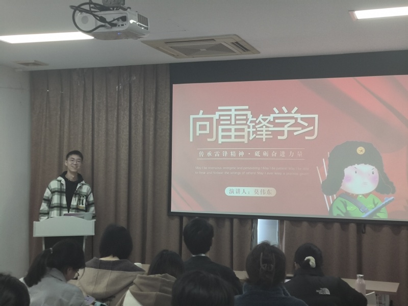 姚文钰同志以《从“熊猫外交”看中国特色大国外交发展》为题,从赠送熊猫切入介绍我国外交政策及发展状况。孙淑楠同志以《从家乡基层医疗着眼如何推动乡村社区医疗卫生服务体系高质量发展》为题,从自己家乡的医疗情况展开,分析了我国基层医疗卫生现况以及发展方向。莫伟东同志以《传承雷锋精神,砥砺奋进力量》为题,以自身为例子全面介绍雷锋精神,并号召支部师生学习弘扬。林萍同志以《中国式现代化,从中国走向世界》为题,介绍了中国式现代化的内容,展示了中国式现代化。张铭轩同志以《由邓小岚女士看乡村建设》为题,以北京冬奥会开幕式合唱《奥林匹克颂》的马兰花儿童声合唱团为切入点,讲述了邓小岚女士在马兰村的故事,并从艺术角度分析乡村建设的可能性。徐菲同志以《明辨舆论,牢牢守住舆论阵地线》为题,介绍我国在国际上的舆论形式,分享关于舆论阵地的观点。罗艺婷同志以《领悟二十大精神传承科学家精神》为题,介绍了钱学森等伟大科学家的事迹,号召支部成员学习并传承科学家精神。韩荟同志以《从多元化医养结合和品质化养老服务看积极应对人口老龄化国家战略》为题,分享了应对人口老龄化的举措。尚佳同志以《以帕德玛大桥为例——中国以合作共赢促命运共同体》为题,从我国在孟加拉国建设的帕德玛大桥切入,介绍大桥建设状况与我国合作共赢构建人类命运共同体的宏伟蓝图。沈柯同志以《从马面裙事件看文化自信自强》为题,以马面裙事件切入展开对于文化自信自强的论述。谭博仁同志以《从医疗帮扶之路看新的“赶考之路”》为题,从医疗帮扶的角度出发,体现为我国全面建成社会主义现代化强国所做出的努力,声情并茂,极富感染力。