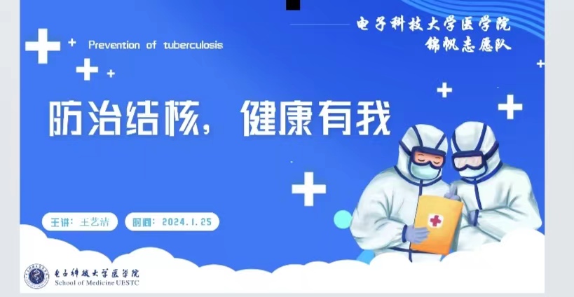 为了普及大家对结核病的认知,电子科技大学医学院锦帆志愿队将从“结核病的定义”、“结核病的预防措施”、“结核病的危害”、“结核病的治疗”四方面进行接下来的寒假社会实践宣讲。“结核病的定义”将从结核病的发病人群、结核杆菌的传播特征、结核病的发病原因、世界防治结核病日四方面来讲解;“结核病的预防措施”将从疫苗接种、卫生管理、健康体检三方面来讲解;“结核病的危害”将从主要症状、情绪、器官、生命几方面来讲解;结核病的治疗将从五个原则来讲解。